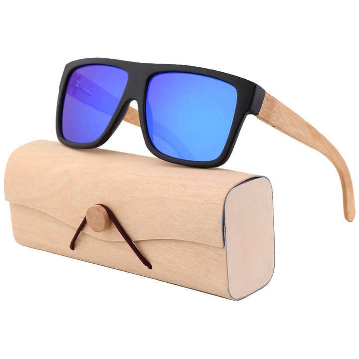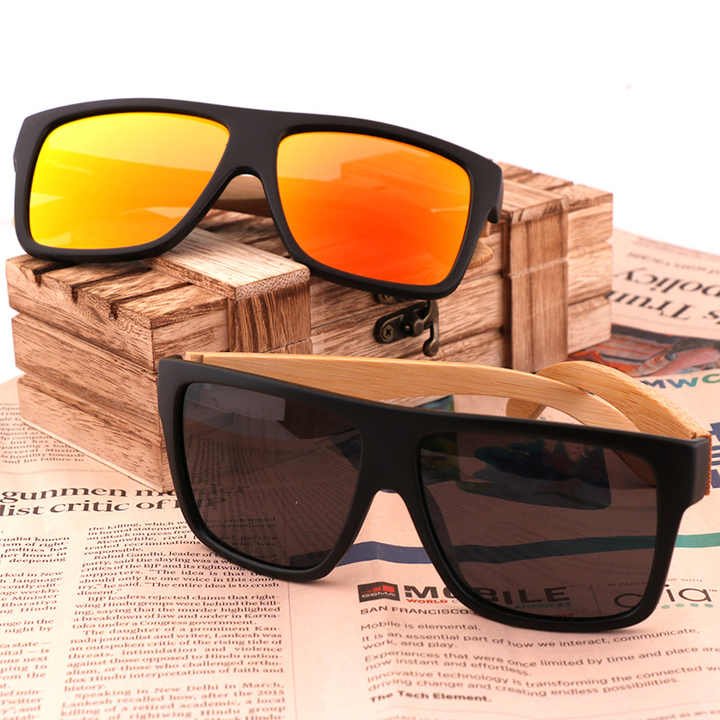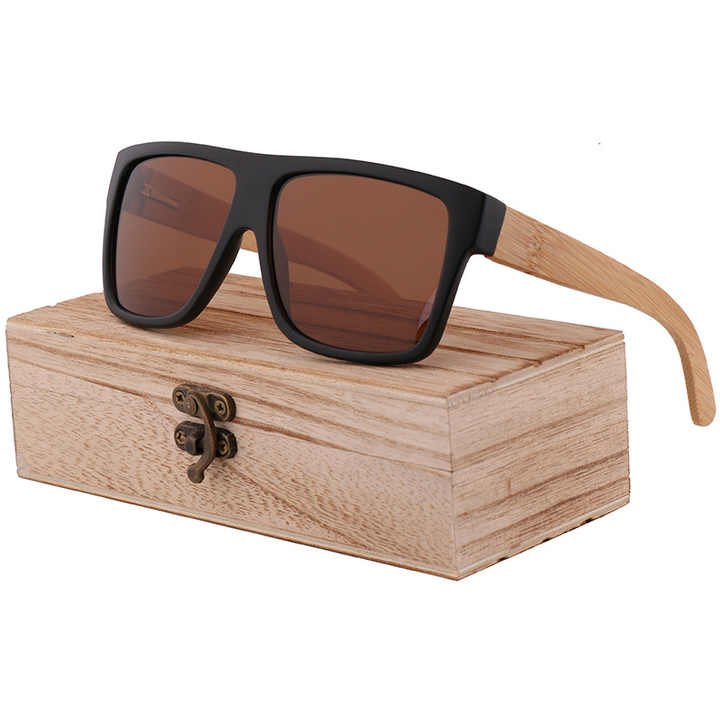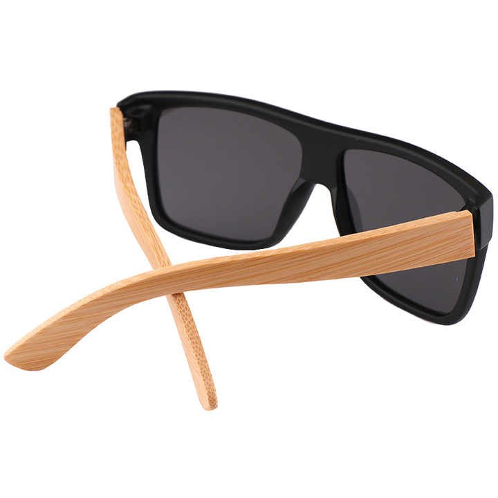 Custom Black Square Plastic Frame Polarized Sunglasses UV400 Protection Fashion Handmade Bamboo Temples Driving Sun Glasses