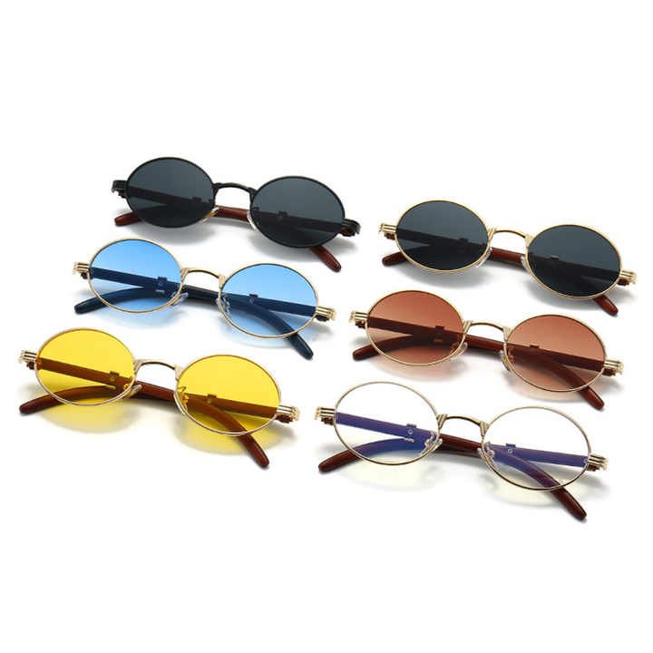 Top Hot Sale Women’s UV400 Custom Logo Sun Glasses High Quality Small Oval Sunglasses with Gold PC Frame for Traveling